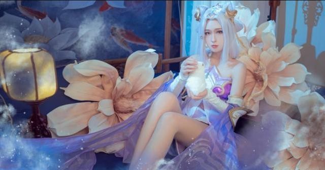 小姐姐cos嫦娥外观上仙气十足,手捧玉兔,仿佛真是天上下凡的仙子。