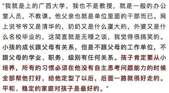 杨晨煜同学告诉媒体,他的父母都毕业于广西本地学校,奶奶更是没上过大学。