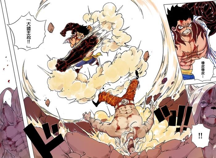 轮到了路飞大战马库斯,二档状态下的路飞完全不是马库斯的对手,一直被他吊打着,可见马库斯的实力是有多强悍。毕竟是凯丽凯厄斯的船长。