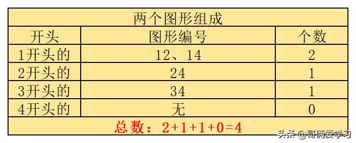 ②数由两个小图形组成的三角形:数数顺序:先数1开头的,数完后数2开头的,接着3,最后数4开头的;