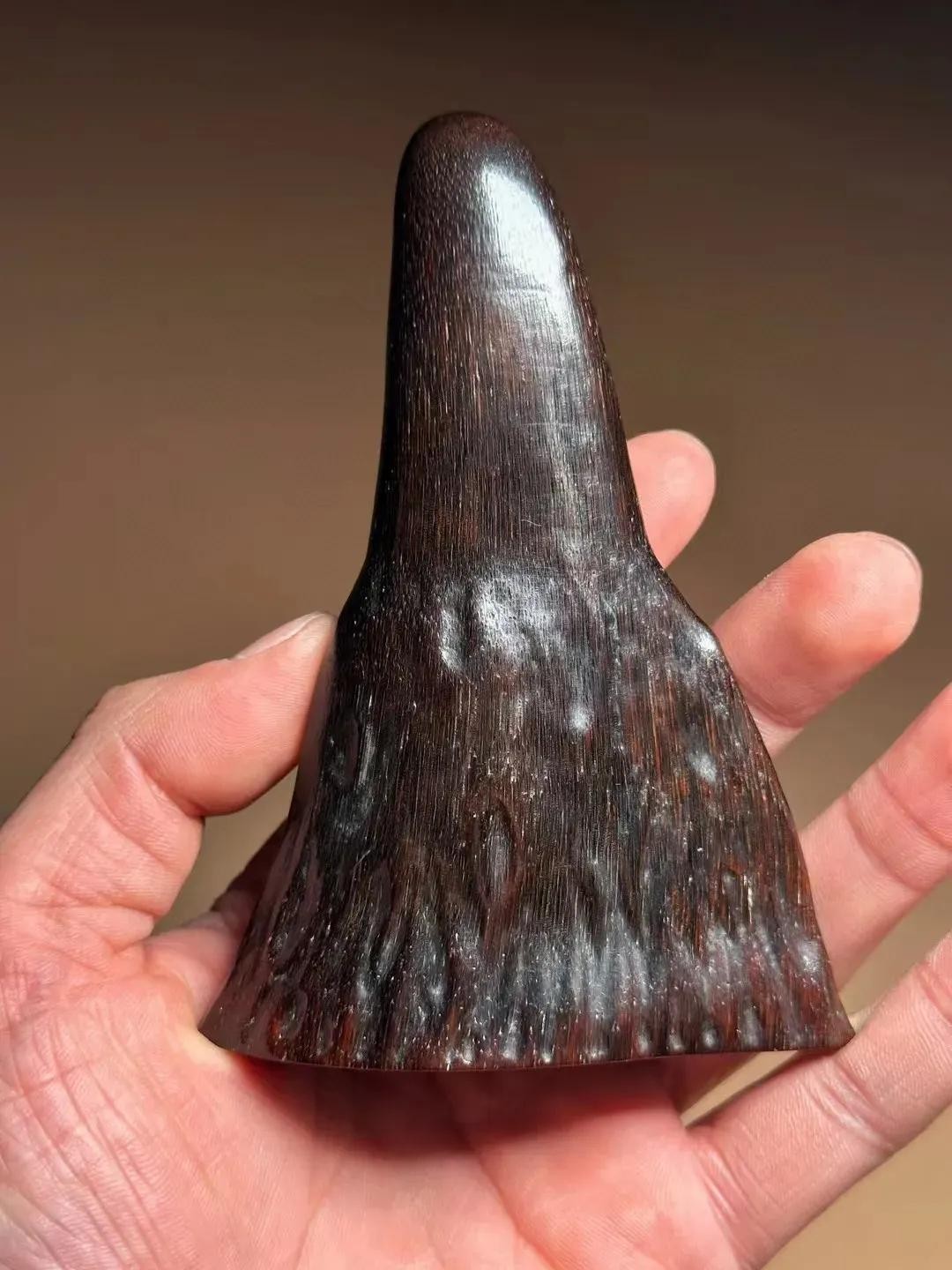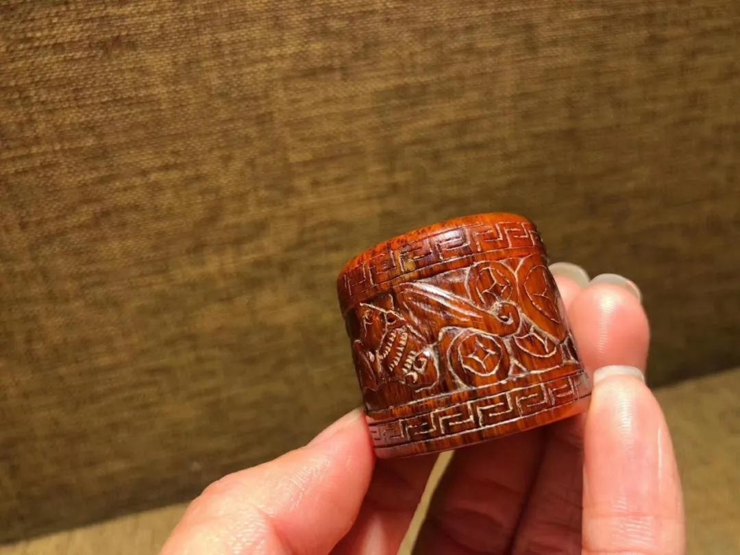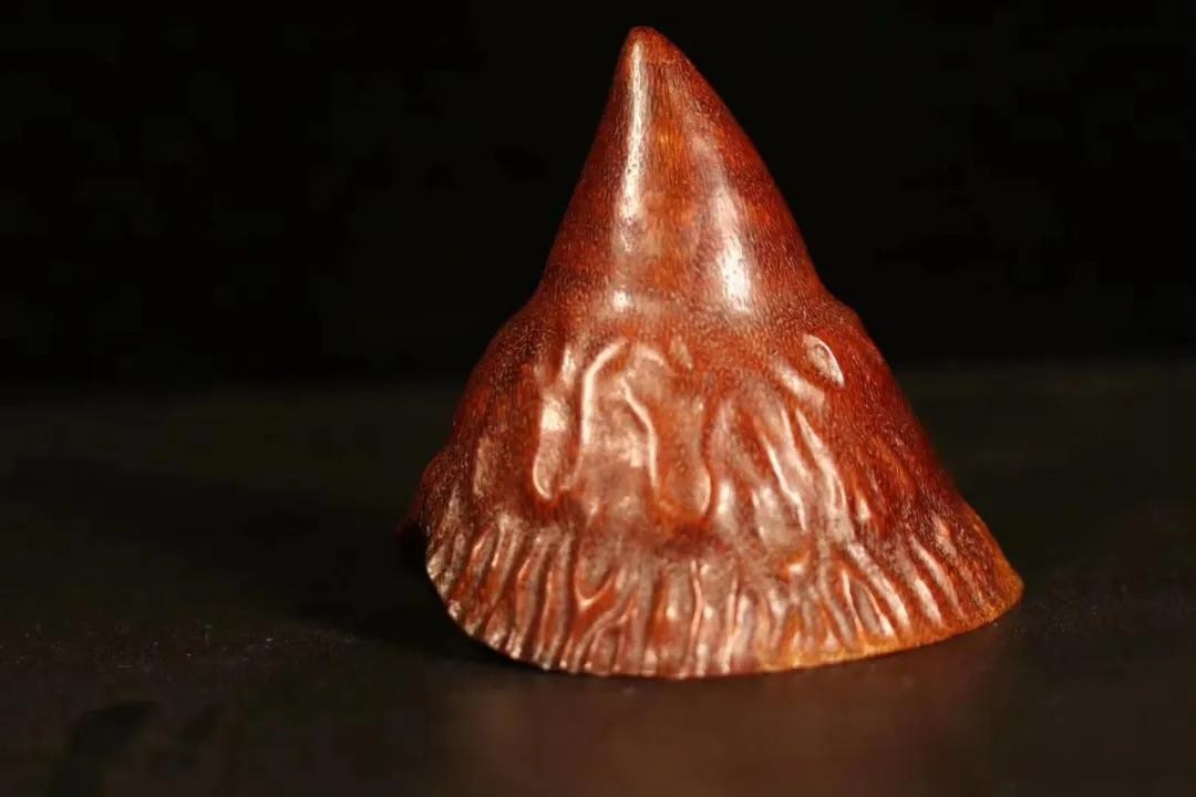 真品老犀角雕红黄料打灯一般都有这样奇特的纹理图案,这是树脂仿品、驴蹄子、牛角等不具备的。