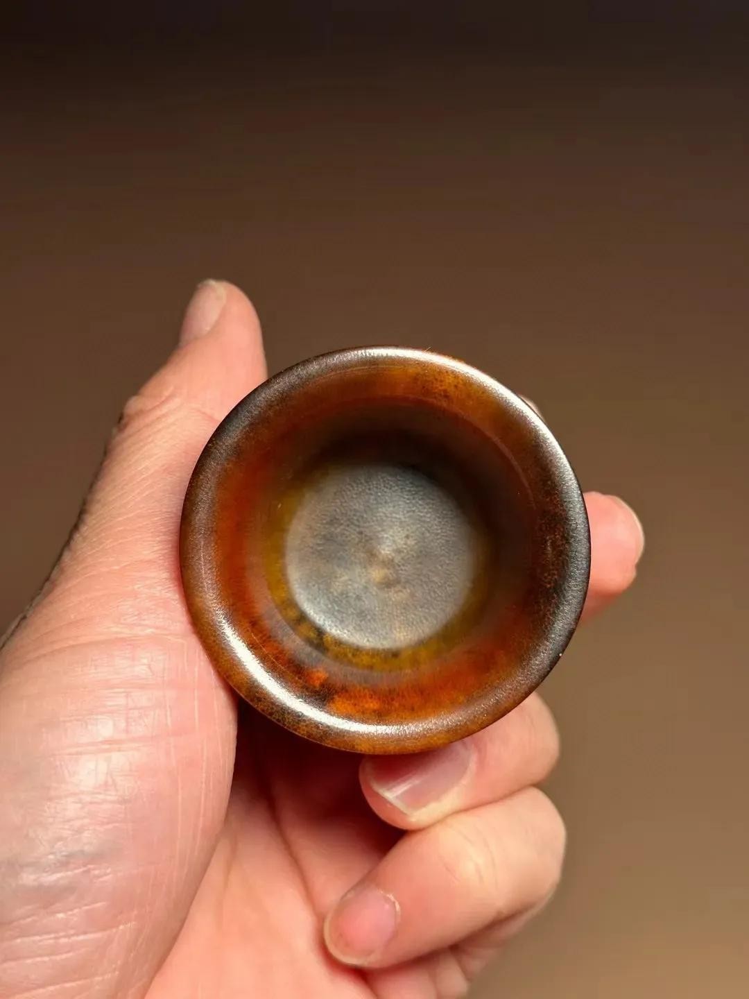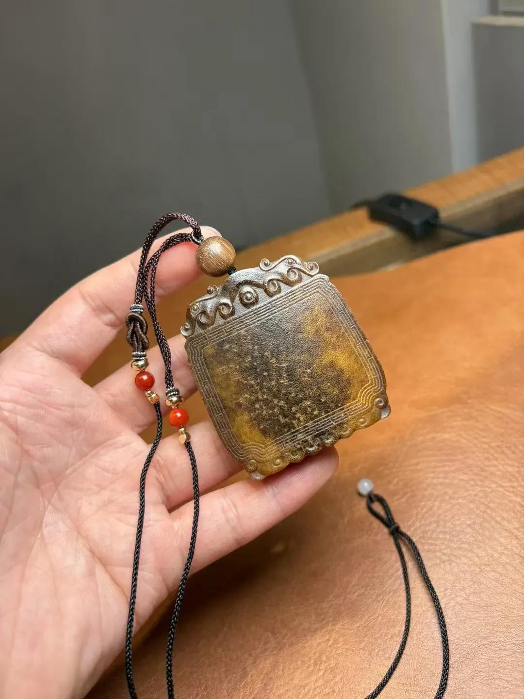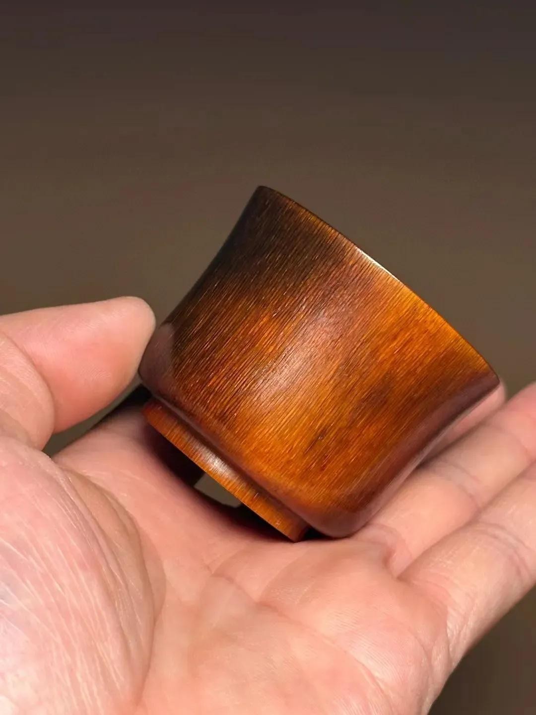 真品老犀角雕红黄料打灯一般都有这样奇特的纹理图案,这是树脂仿品、驴蹄子、牛角等不具备的。