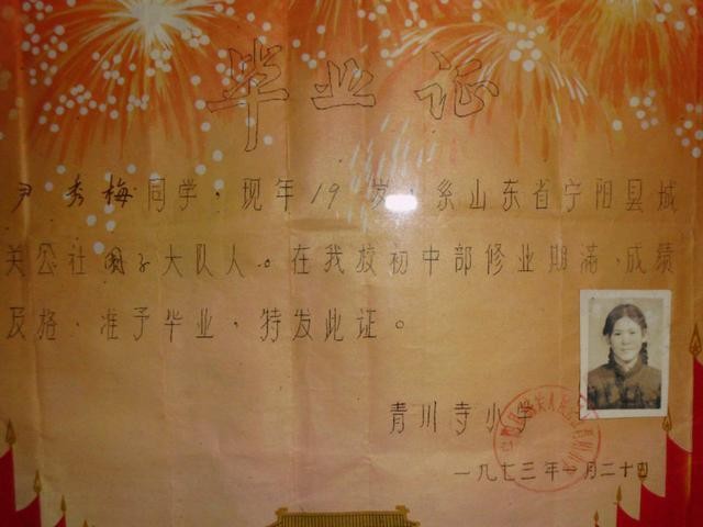 俺娘初中毕业。由于时代背景和家庭条件限制,继续读书的愿望被彻底打碎。这是俺娘的初中毕业证: