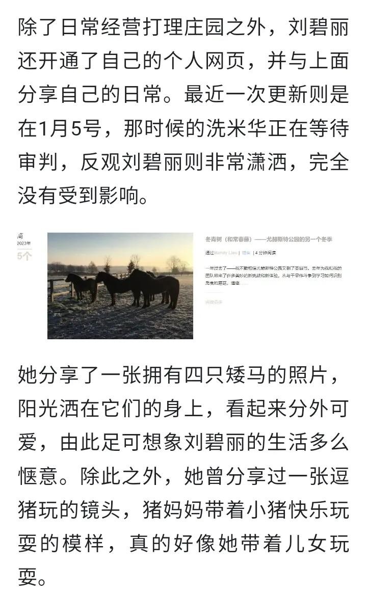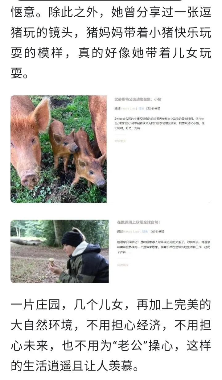 而当年地表最强小三刘碧丽则拿着5亿分手费,在英国开农场,写文章,化身独立女性,俨然一副人生赢家的姿态。