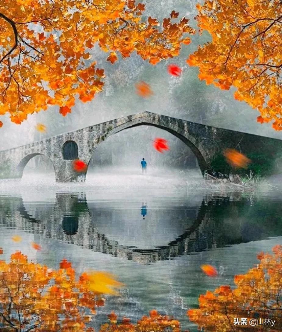 意景优美,秋色如画,落叶纷飞,空旷的原野,一个孤独的人。