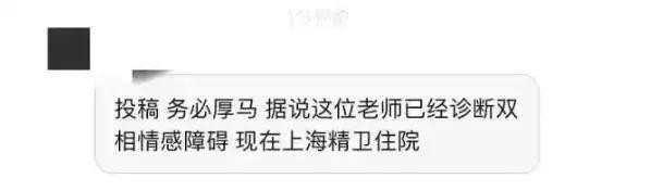 最新网传消息是:7月26日,陆某在服药试图自杀被医院抢救回来后。打算通过举报自己学术不端来与李某“玉石俱焚”。但此行为会导致李某博士生导师受到牵连,最终陆某被送至精神病院。