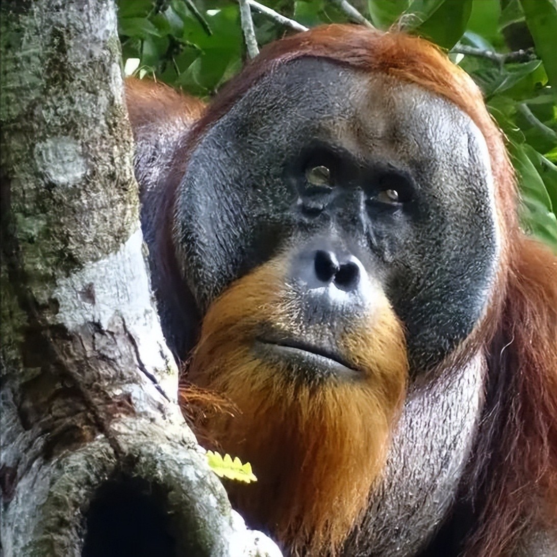 在2022年6月,在印度尼西亚勒塞尔火山国家公园,科学家们发现一只名叫拉库斯(Rakus)的野生苏门答腊雄性红毛猩猩,脸上多了一块很大的伤口。