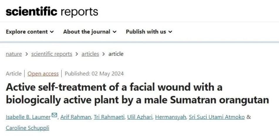 2024年科学家们在《科学报告》杂志上发表了一篇论文,他们第一次拍到野生动物用植物治疗开放性伤口的画面。