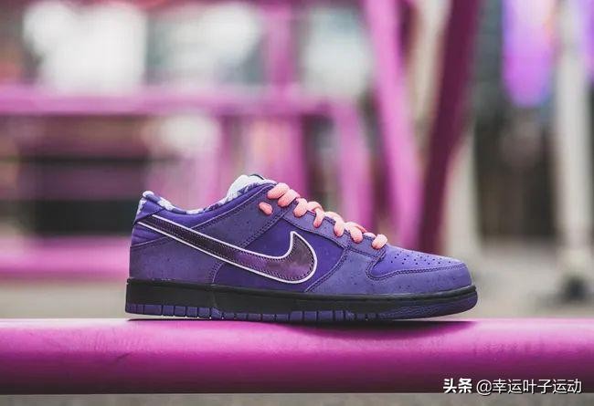 因为Concepts 正式入驻中国上海,紫龙虾 Dunk SB Low 也成为国内首双龙虾系列球鞋。骚气的紫色与考究的细节,颜值无可挑剔,让这双鞋成为里程碑级的存在。