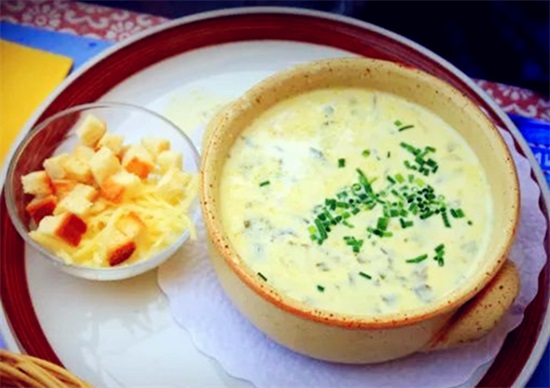 接下来说的是瑞士食物。首先要说的是芝士火锅,芝士火锅是将芝士酱放入一个锅中,加入些白酒和果酒即可,食用时,拿取面包蘸取其中,即可食用。此时面包又香又甜,不仅有酒的醇香,还有这芝士浓郁的香气,这是平常食物都难以带来的享受;当然,若想要再加些什么配料也可,毕竟每个人的爱好都不一样。