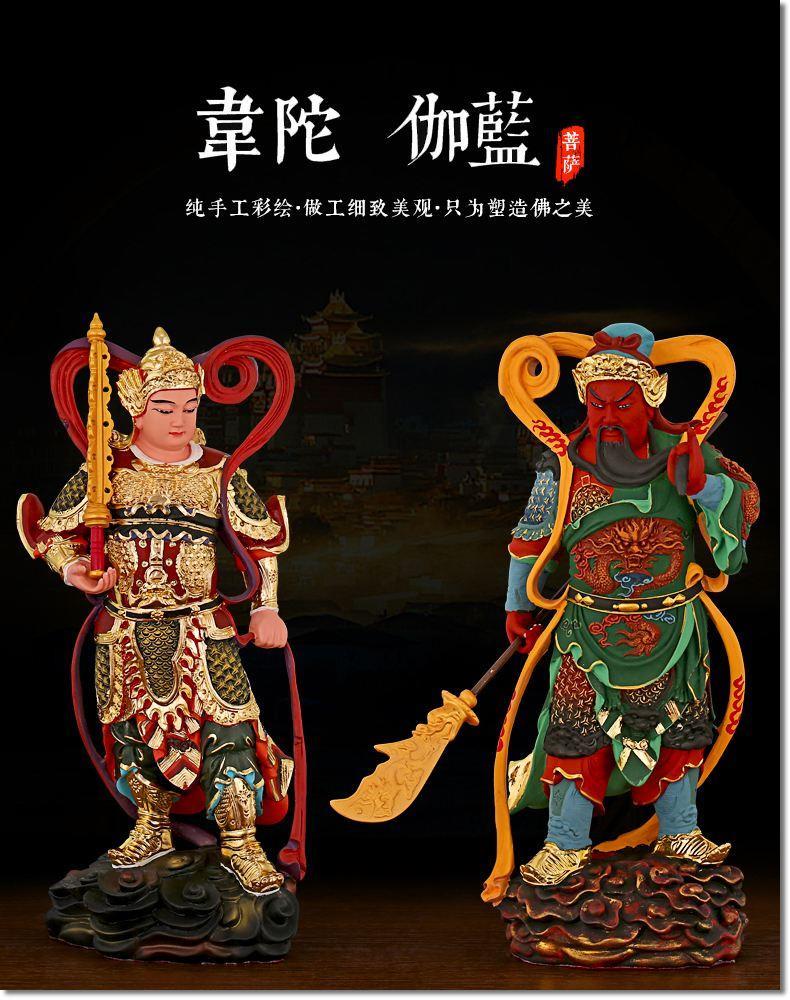 隋代天台宗的创始者智者大师在荆州玉泉山入定时,听见关羽的怨魂在大喊:“还我头来!”智者大师就以佛法化解关羽的怨气。关羽听了智者大师的讲法后,情愿皈依佛教。从此。关羽就被佛教封为伽蓝菩萨,与韦驮并称佛教寺院的两大护法神,关羽为右护法,韦驮为左护法。