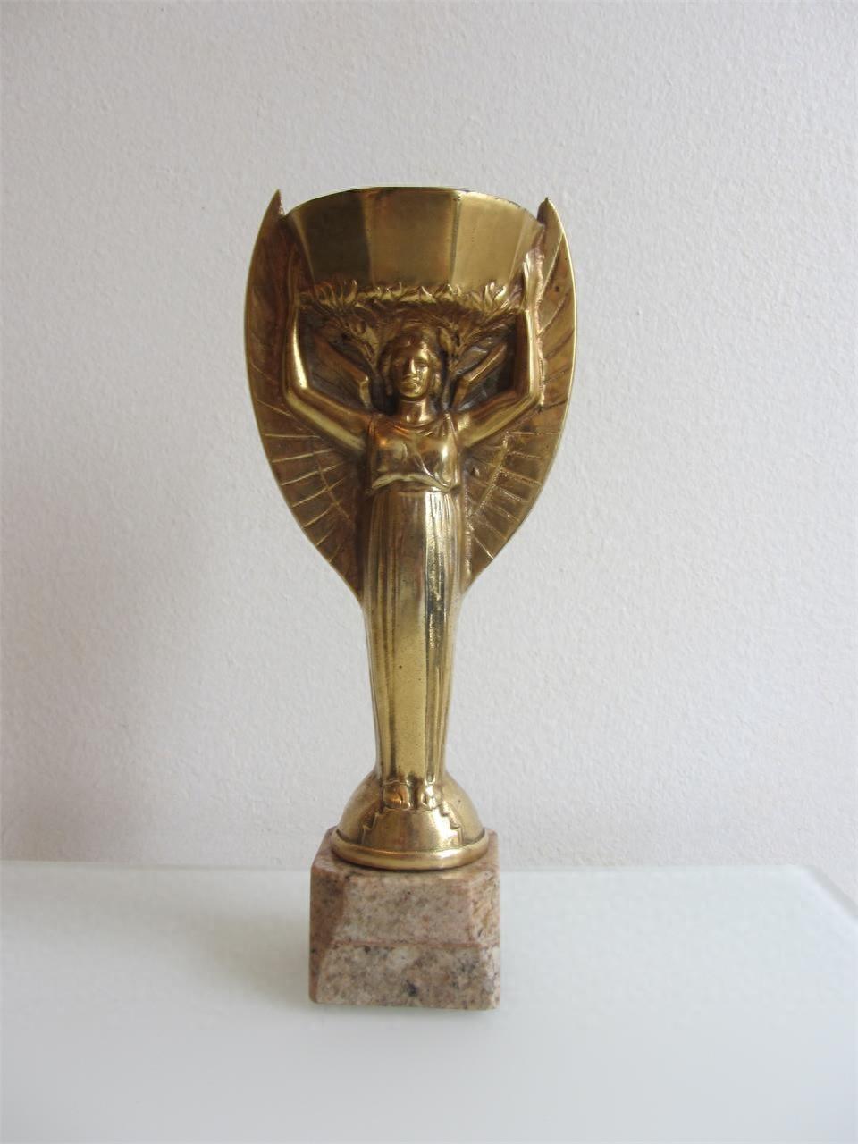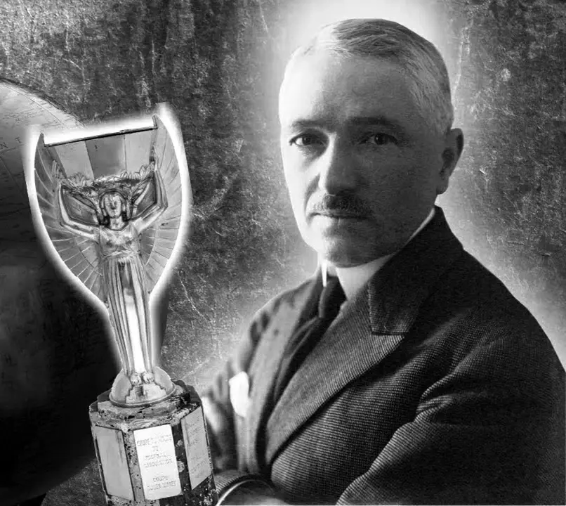 1929年,在第三任国际足联主席雷米特(Jules Rimet)的推动下,投票通过了于1930年举办首届世界杯的创举。法国雕刻家拉夫勒尔(Abel Lafleur)制作了颁发给优胜队的纯金奖杯,该奖杯是在镶嵌着宝石的支柱上,希腊胜利女神伸展双臂托着八角形杯子,以前被命名为“胜利杯”(Victory),也称为“女神杯”。