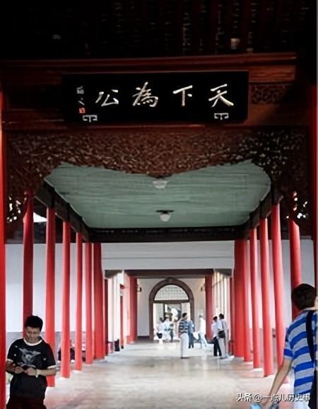 进入大门,是之前太平天国最高掌门人天王洪秀全的金龙殿,大厅上悬挂的是孙中山亲笔书写的“天下为公”四个大字。