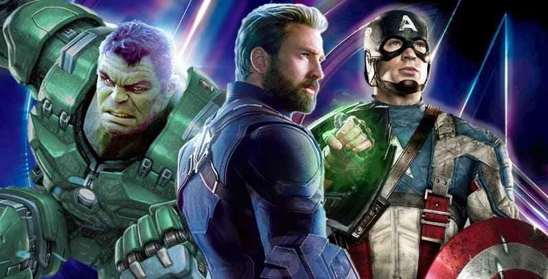 根据泄密,这也是前几天网上流传的只有2个初代复仇者幸存下来的最终来源。在雷神、美国队长和灭霸的战斗过程中,美国队长拿着雷神最初的那把锤子(由于时间线的原因,雷神之锤又出现了,这次,美国队长拿起了那把锤子)锤了灭霸一下,结果被灭霸反手灭杀。在这个过程中,鹰眼负责保护未完成的铁人版无限手套,扮演着一个相当重要的角色。同时,布鲁斯·班纳和绿巨人也终于融合在一起(教授),在绿巨人戴着铁人版无限手套和灭霸的硬刚的战斗中,绿胖失去了一只手臂(暂且不管以后还会不会恢复)。