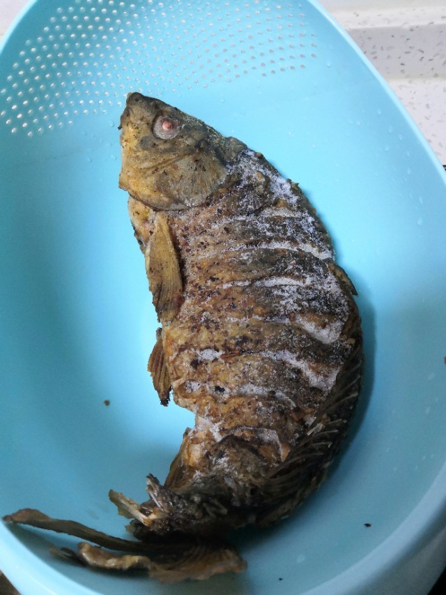 第二步:先把鲤鱼炸一下(也可以煎),炸鱼就面粉里加2个鸡蛋调成糊,把鱼粘上干粉再放到调的糊,粘上面糊,放油锅里炸至金黄就可以了。