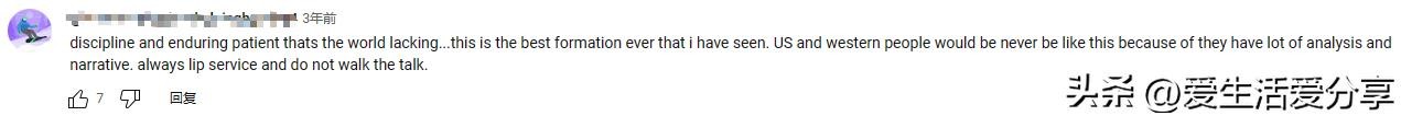 一位外国网友这样评价:来自纪律和持久的耐心是这个世界所缺乏的……这是我所见过的最好的阵型。 美国和西方人永远不会这样,因为他们有很多分析和叙述。 总是口头上说,不说到做到。