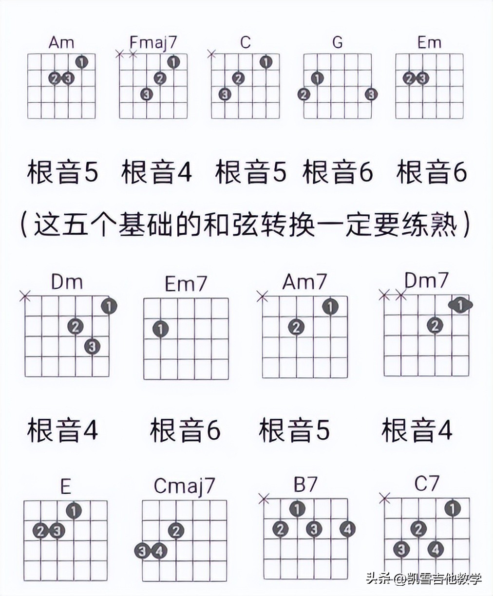 常用吉他和弦大全!新手们,我们先记熟C调和G调和弦即可