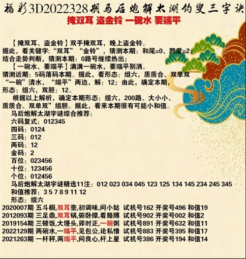 第二点:后两句讲的是一碗水。碗里装着水,保持平衡水不洒出,本期看好势态平稳的号码开出。
