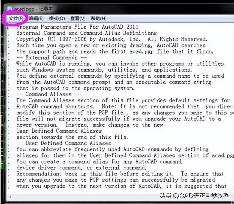 3.修改后点击文件保存就可以了,需要关闭CAD,重新打开修改的快捷键才能生效。