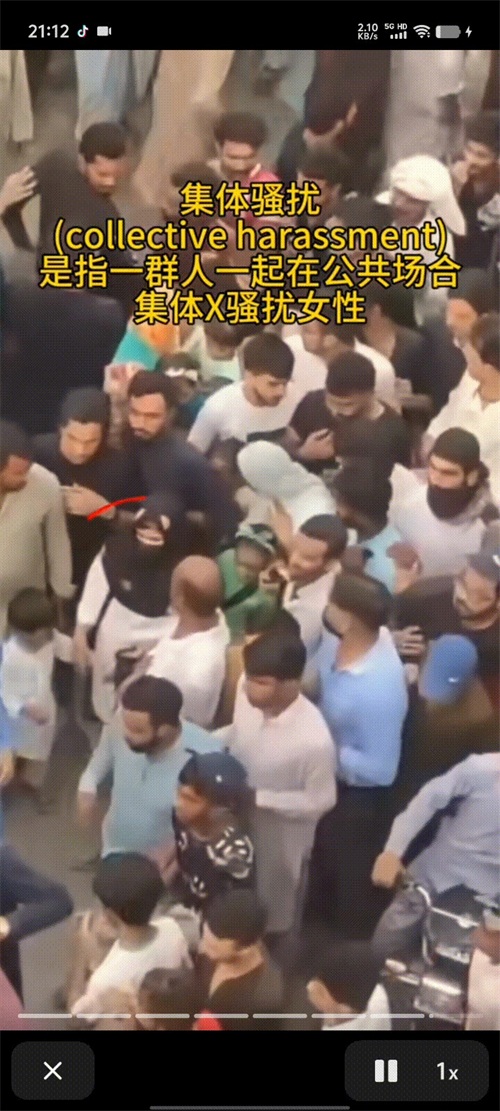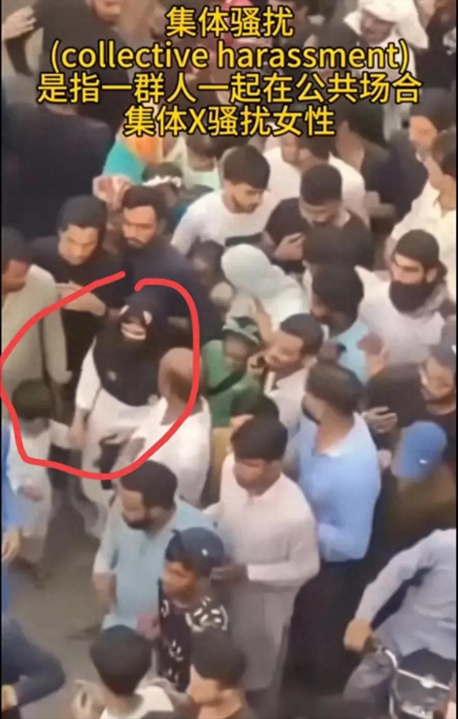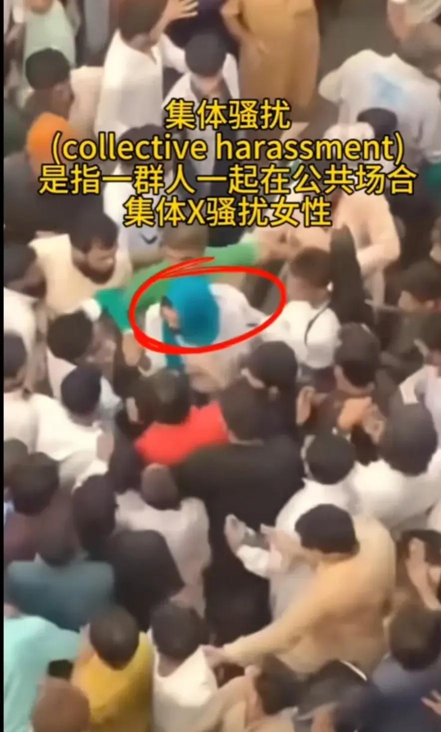 尤其是其中一个戴着青色头巾的女性,被抓住之后大声呼救,但是没能叫来警察,反而叫来了越来越多的性侵犯!