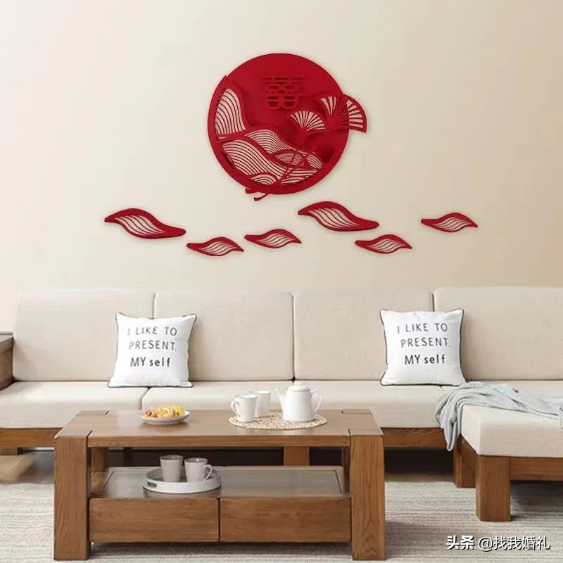 高级的立体红扇、喜庆的喜字挂饰,还有翩翩起舞的大红色蝴蝶……超高性价比就能拥有一间高颜值婚房哦!