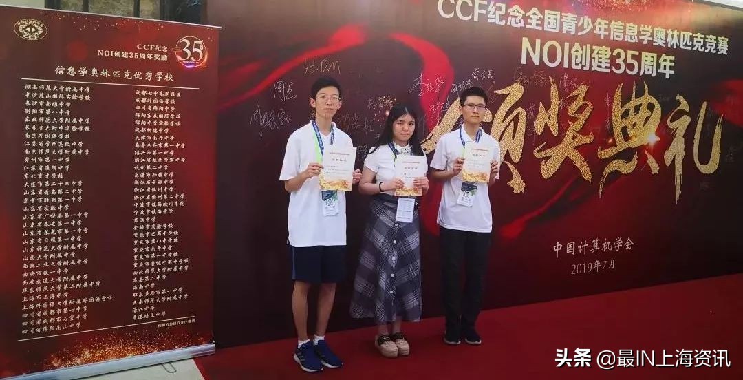 在今年的第36届全国青少年信息学奥林匹克竞赛(NOI 2019)中,上外附中三位同学获得了一金二铜共三枚奖牌。