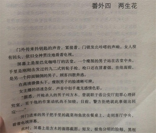 心理罪的第九部是两生花,描述了魏巍在自己身患绝症之际,江亚要杀死方木之前,救下了方木,用朱志超替换了方木的故事,这个故事主要在于对城市之光留下的疑问,全部进行了解答。