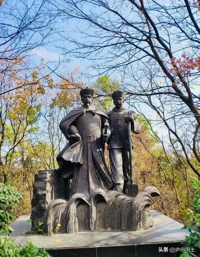一边步行登山,一边凝视路两旁耸立的淮军将领塑像,往事历历在目,油然而生敬仰之情。