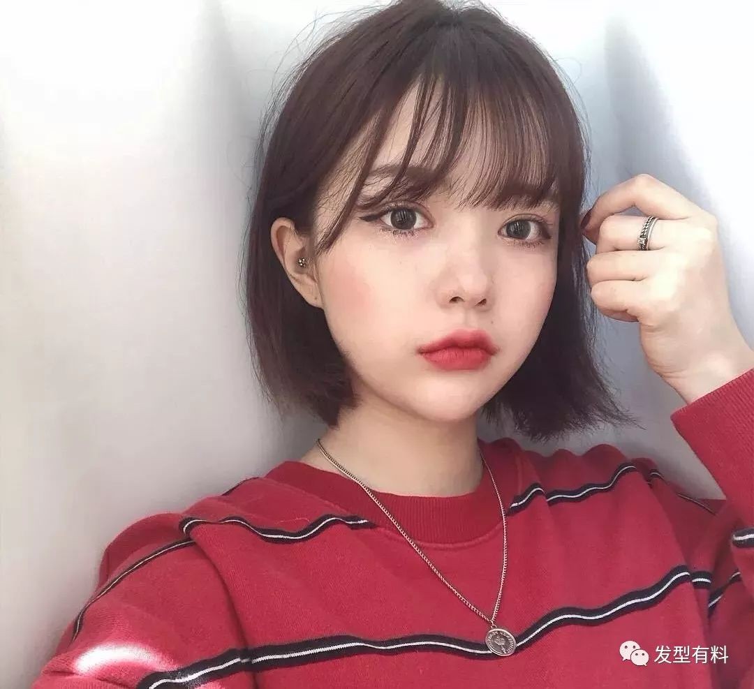 戒不掉的甜美风,永远毕业不了的少女情结,在发型上日系短发最能体现这种软萌的娃娃感哦,最最最最基础的乖乖女妹妹头,不管谁剪了都会自带温柔少女气息~