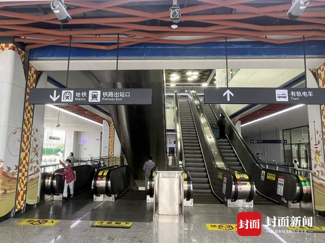 又如何出站转乘?记者看到,出站口连接地铁、有轨电车等转乘交通工具,乘客可根据具体情况选择。