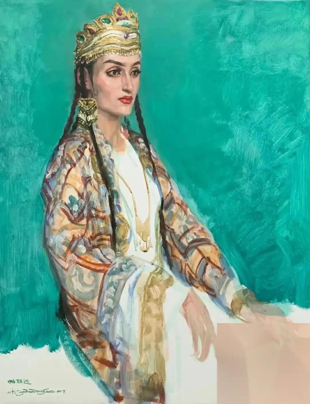 于小冬是一位来自东方大国的油画艺术家,他的作品以女性为题材,通过独特的艺术语言展现出对于情感和生命的猜想。在他的作品中,我们可以看到黑白灰、蓝绿紫等深色调的背景,背景色彩的渲染和运用为整个画面营造出一种神秘、梦幻的氛围,给人一种超脱现实的感觉。而在女性的肌肤肢体和服饰表现上,他采用粗糙的线条和重叠的色彩,将这些元素表现得非常立体饱满,给人强烈的视觉冲击力,也让人不由自主地被作品所吸引。