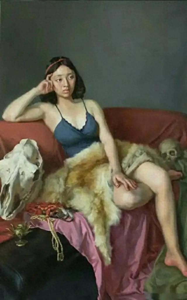除了对于女性形象的表现,于小冬的作品中还出现了一些意想不到的元素,比如骷颅头等西方艺术中常见的符号。这些元素的出现为作品增添了一些神秘和深刻的寓意,也给观众留下了丰富的联想空间,观众可以根据自己的理解和感受去诠释这些元素所代表的意义,与作品产生更加深入的互动和交流。