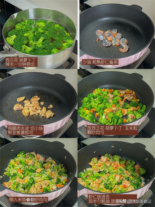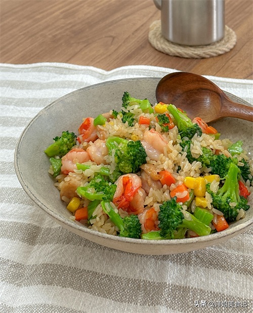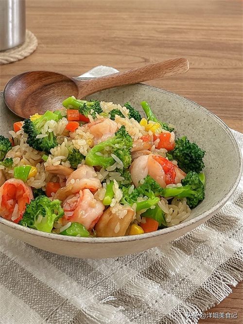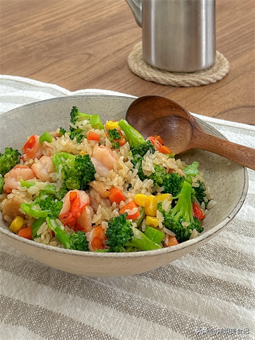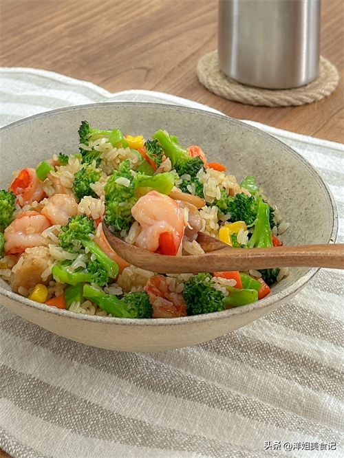 西兰花胡萝卜丁蒜香虾仁拌饭