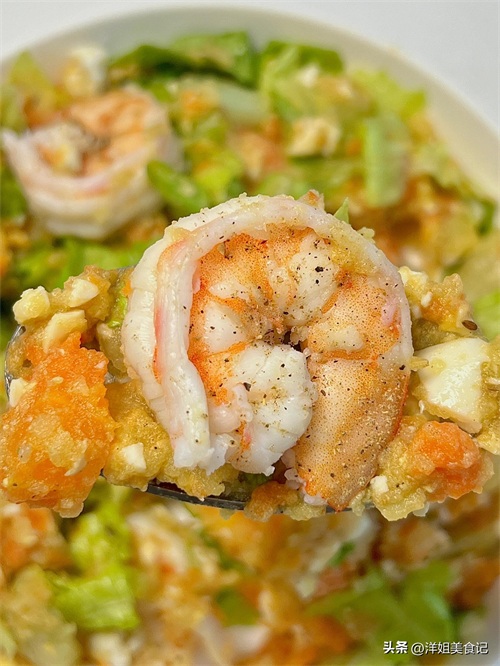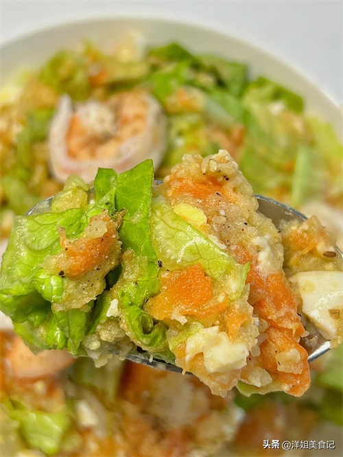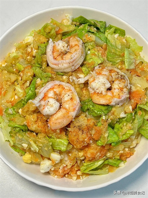 生菜碎葱香鸡蛋拌虾仁