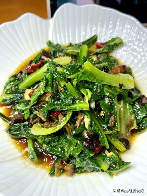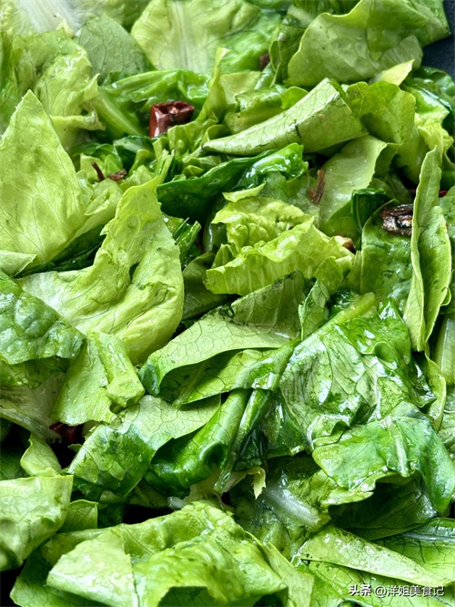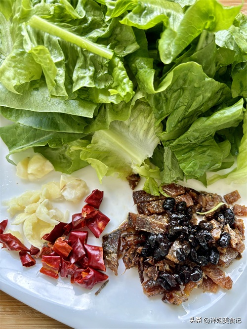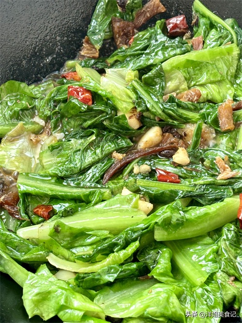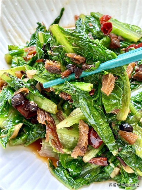 蒜末干辣椒段豆豉鲮鱼炒油麦菜