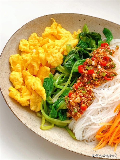 辣汁菠菜鸡蛋拌粉丝