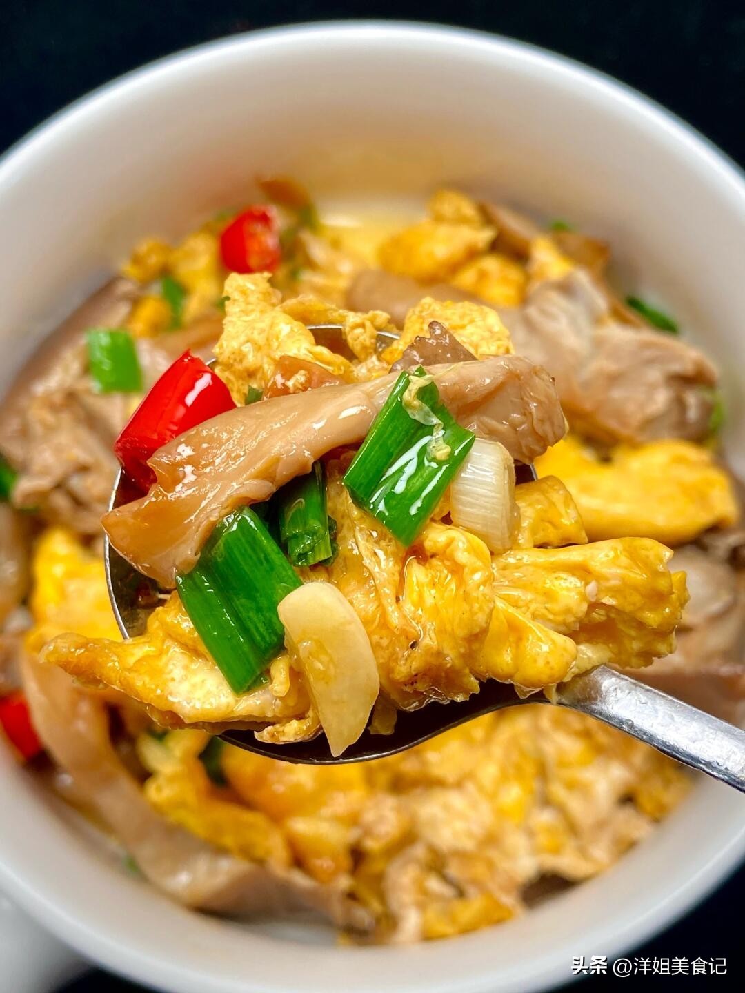 葱香蒜末平菇炒鸡蛋