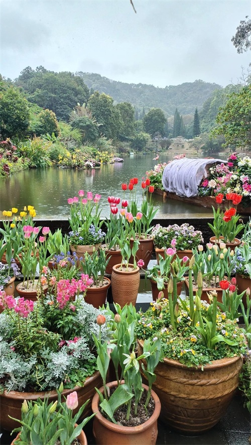 弘法寺祈福完,下大雨的原因,准备打道回府,偶遇园区开办春花节郁金花展,正好2月12日是最后一天,它主要展览区就在弘法寺旁边的沙楞湖和天上人间区,所以回程的路上,正好可以欣赏欣赏美丽的郁金花,看着一片五彩斑斓的郁金花开,被大雨淋湿的阴郁心情顿时雨过天晴,所以说美丽的东西总是有治愈的效果!