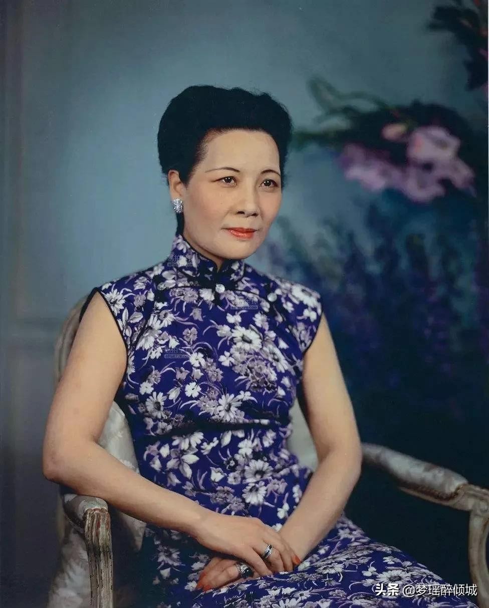 宋美龄这一件紫色绣花的旗袍,看起来也是非常的雍容秀美,没有过多修饰,只用一对耳环点缀,显得宋美龄姿态端庄气质非凡,宋美龄是有名的“旗袍控”,一生与旗袍相伴,并将旗袍穿到了各个重要的场合,甚至在欧美国家都刮起了一阵旋风。