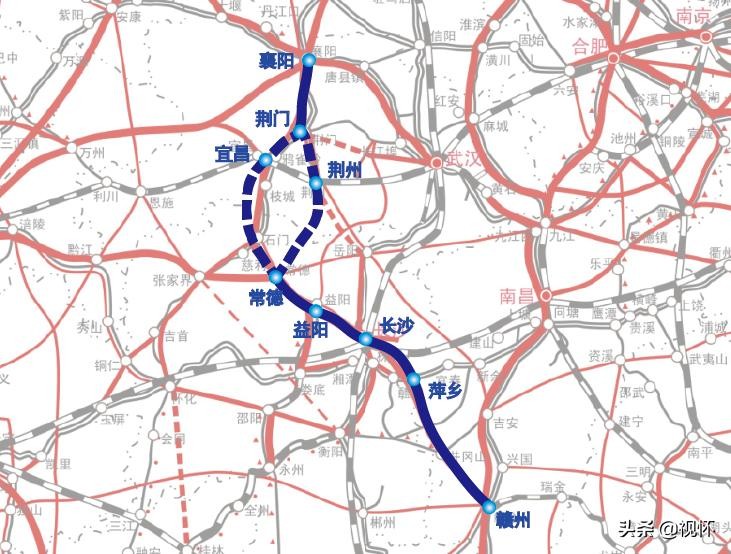 首先来讲讲湖北段,湖北段已经建成的是襄阳以北段,而襄阳以南段又分为了西线经宜昌至常德、东线经荆州至常德两个线路方案,其中又分了好几个项目在推进。比如襄阳至荆门段项目、荆门至宜昌段属于沿江高铁武汉至宜昌段项目、荆门至荆州段项目等等。