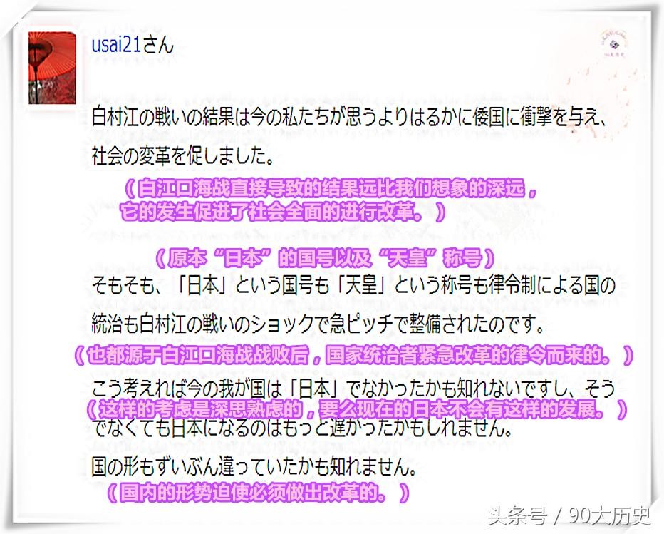 日本网友发表的对“白江口海战”后,对日本产生的影响争论