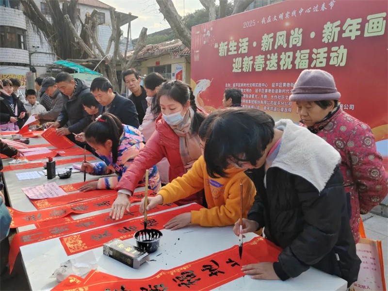 在全省各地新时代文明实践(所)站,文明实践惠民活动、主题书法家义务写春联、文艺惠民等“我们的节日·春节”主题文明实践活动丰富群众文化生活,展现乡村新风貌。新年之际,漳州市云霄县以文明实践活动为载体,精心打造了一系列“我们的节日·欢乐中国年”主题活动,传递“新年到,福气到”的美好祝愿。龙岩各地依托新时代文明实践中心(所、站),深入开展“我在新时代文明实践中心过春节”、“移风易俗迎新春·文明健康过新年”主题宣传活动等丰富多彩的主题活动,将新春问候与美好祝福送到群众身边。三明各地新时代文明实践中心接连开展形式多样的“我们的节日·春节”主题活动。新春大游园活动、非遗制作体验、新春文艺演出等活动让广大群众在互动和游戏中尽情游玩,营造出欢乐、祥和、温馨的节日氛围。