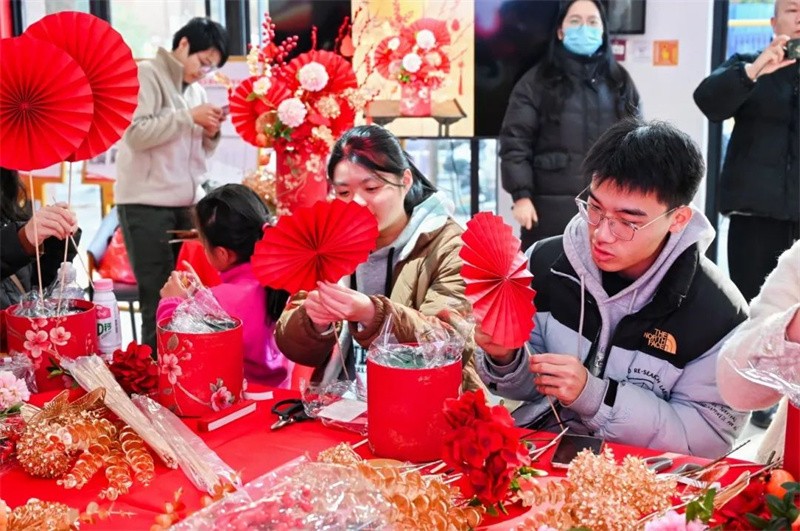 “这样的活动很有意义,希望在以后每一个传统节日都能开展一次活动……”在宁德市柘荣县开展的2025年“我们的节日·欢乐中国年”春节暨“笔墨迎春·楹联送暖”文明实践活动上,市民袁兴旺由衷地说道。在福建,一场场丰富群众精神生活,营造“欢欢喜喜过新年”浓厚氛围的文明实践活动在各地亮相。在莆田城厢区新时代文明实践中心,“青春不打烊,年味玩出来”城厢区青年公益沙龙活动现场气氛活跃,年味十足。火红的发财果、圆滚滚的木绣球、金灿灿的银杏叶……活动现场,青年们通过选择不同的花材和装饰,以多样的风格呈现作品,展现个性化风采,也为新年带来了满满祝福。在南平,延平区各新时代文明实践所(站)广泛开展“新生活·新风尚·新年画”文明实践文化展示活动,为新春佳节披上浓厚的节日盛装。艺术家们以新时代为背景,创作出了一幅幅反映人民生活、展现时代风貌的年画作品。