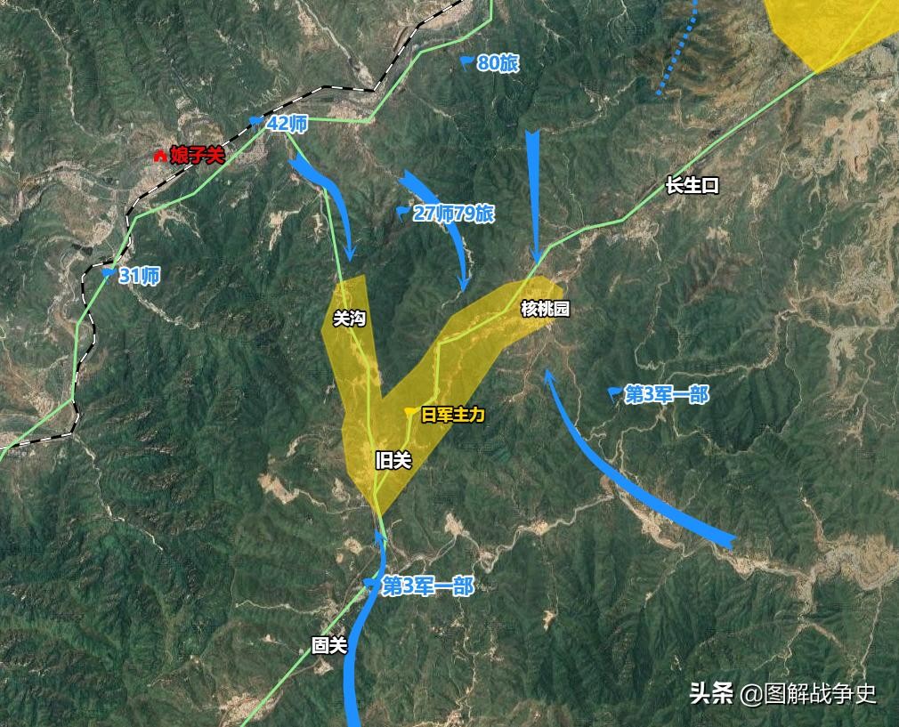 同样27师也仅占至旧关以北的高地,日军在轰炸机的配合下组织多次反扑,与27师官兵展开激烈争夺,战斗一直持续到夜间。井陉方向,日军又派出援兵进占至大、小龙窝附近。但第3军军此前已经抢占了核桃园,所以增援的日军只能与旧关日军遥相呼应,并不能合兵一处。