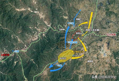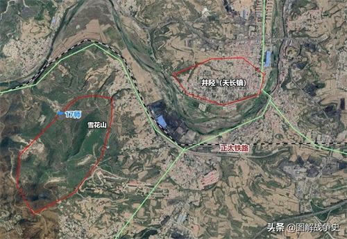 雪花山位于井陉(今井陉县天长镇)西南方向,海拔不高,大约四百来米,但确是井陉城周围最重要的制高点,而且又处于井陉至固关、井陉至娘子关两条大道的交汇处,正太铁路从其脚下穿过,所以控制住井陉就能锁住这三条交通要道,战略位置非常重要。我军驻守在此的是27路军赵寿山第17师。