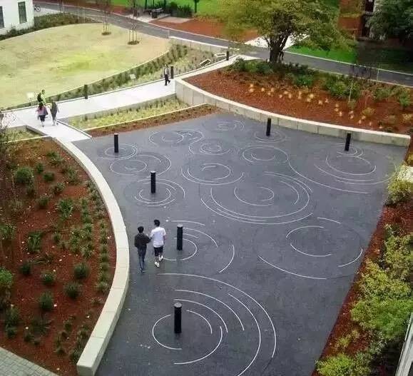 铺装通过材料或样式的变化形成空间界线,在人的心理上产生不同暗示,达到空间分隔及功能变化的效果。两个不同功能的活动空间往往采用不同的铺装材料,或者即使使用同一种材料,也采用不同的铺装样式。