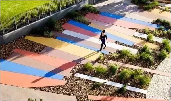铺装的色彩要与周围环境的色调相协调,它也是心灵的表现,能把设计者的情感强烈地贯入人们的心灵。色彩的选择要充分考虑人的心理感受,色彩具有鲜明的个性,暖色调热烈,冷色调优雅,明色调轻快,暗色调宁静。色彩的应用应追求统一中求变化,即铺装的色彩要与整个园林景观相协调,同时园林艺术的基本原理,用视觉上的冷暖节奏变化以及轻重缓急节奏的变化,打破色彩千篇一律的沉闷感,最重要的是做到稳重而不沉闷,鲜明而不俗气。
